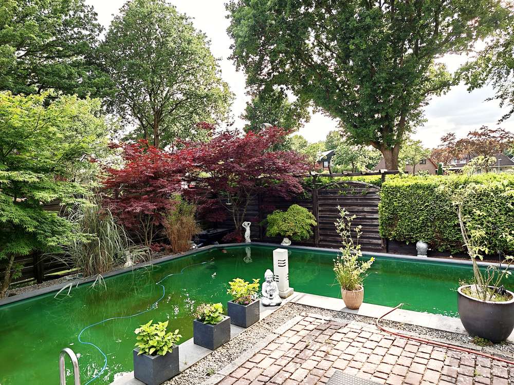 Es befindet sich ein großer Pool/Schwimm-Teich im Garten