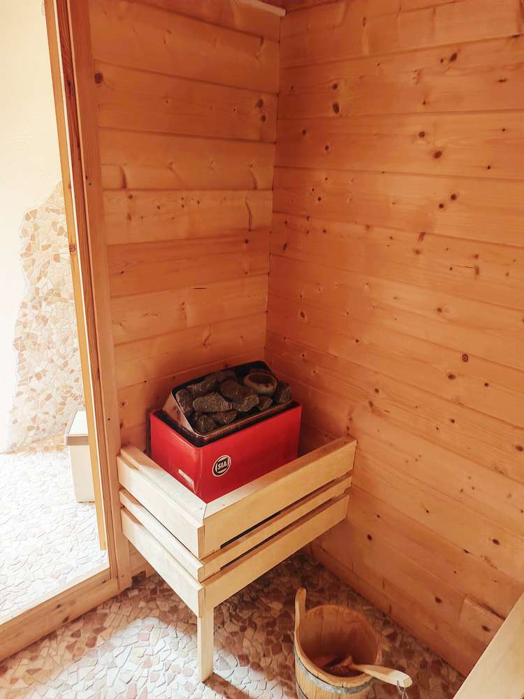 im Obergeschoss, eine Sauna im Garten, jeweils ein Ofen und ein